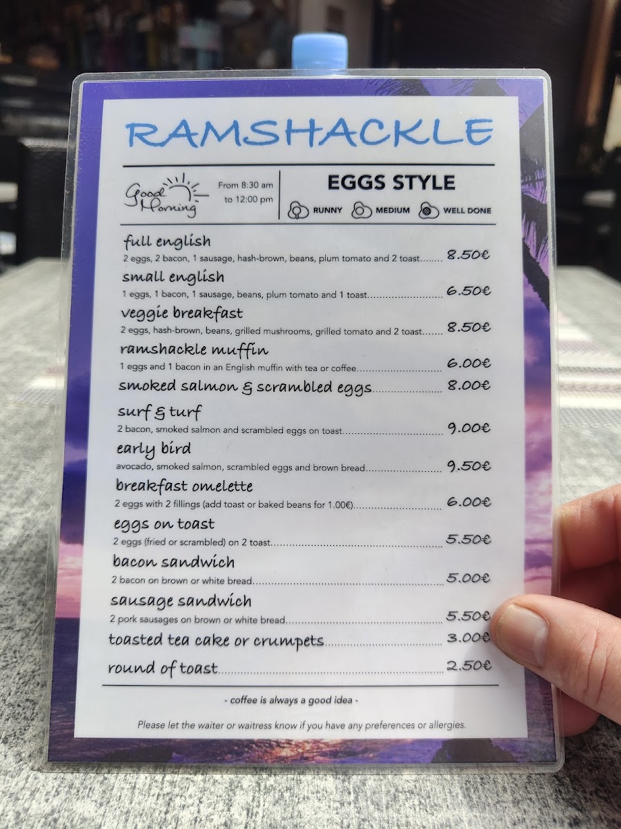 Introducing the menu at Ramshackle, a charming café nestled in Portals Nous, Spain, offers an inviting array of dishes that celebrate freshness and flavor. Renowned for its full English breakfast, patrons rave about the satisfying portions and the warmth of the service. The specials of the day showcase creativity, presenting an exciting culinary journey with each visit.